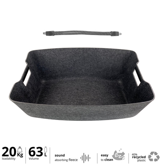 Keine andere Stauraumlösung passt so genau in den Frunk oder Trunk. Durch Lasermesstechnik konnte die originale Tesla-Kontur exakt kopiert werden. So wird kein Platz verschwendet!